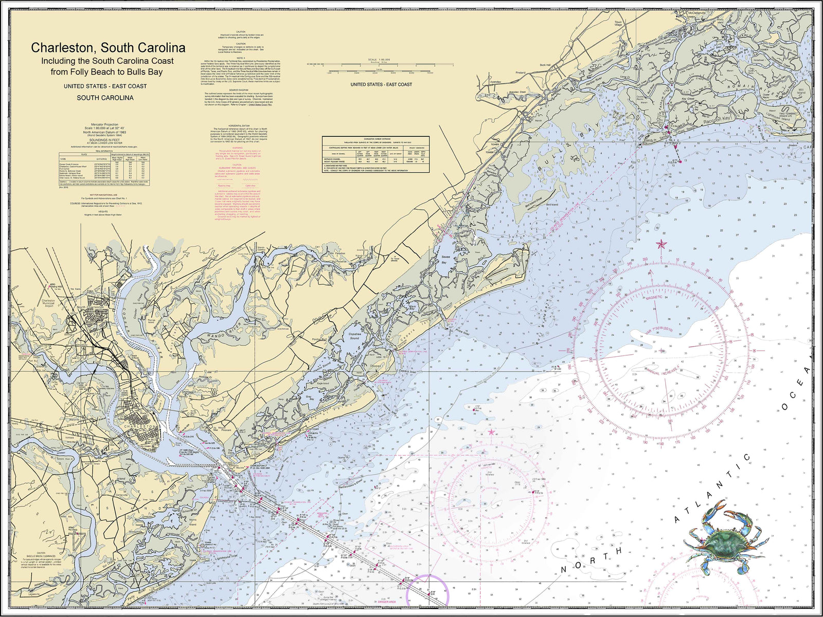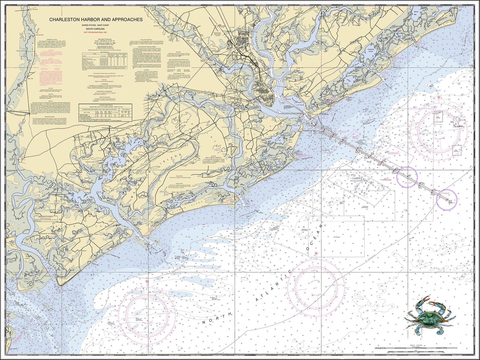 Our charts turn into artwork when we superimpose our painted maritime images and sketches onto our charts. These images include a lighthouse, crab, shrimp, turtle, shrimp boat, schooner, and a variety of other maritime images. Contact us at allyn@lowcountrysketches.com if you have any special requests.