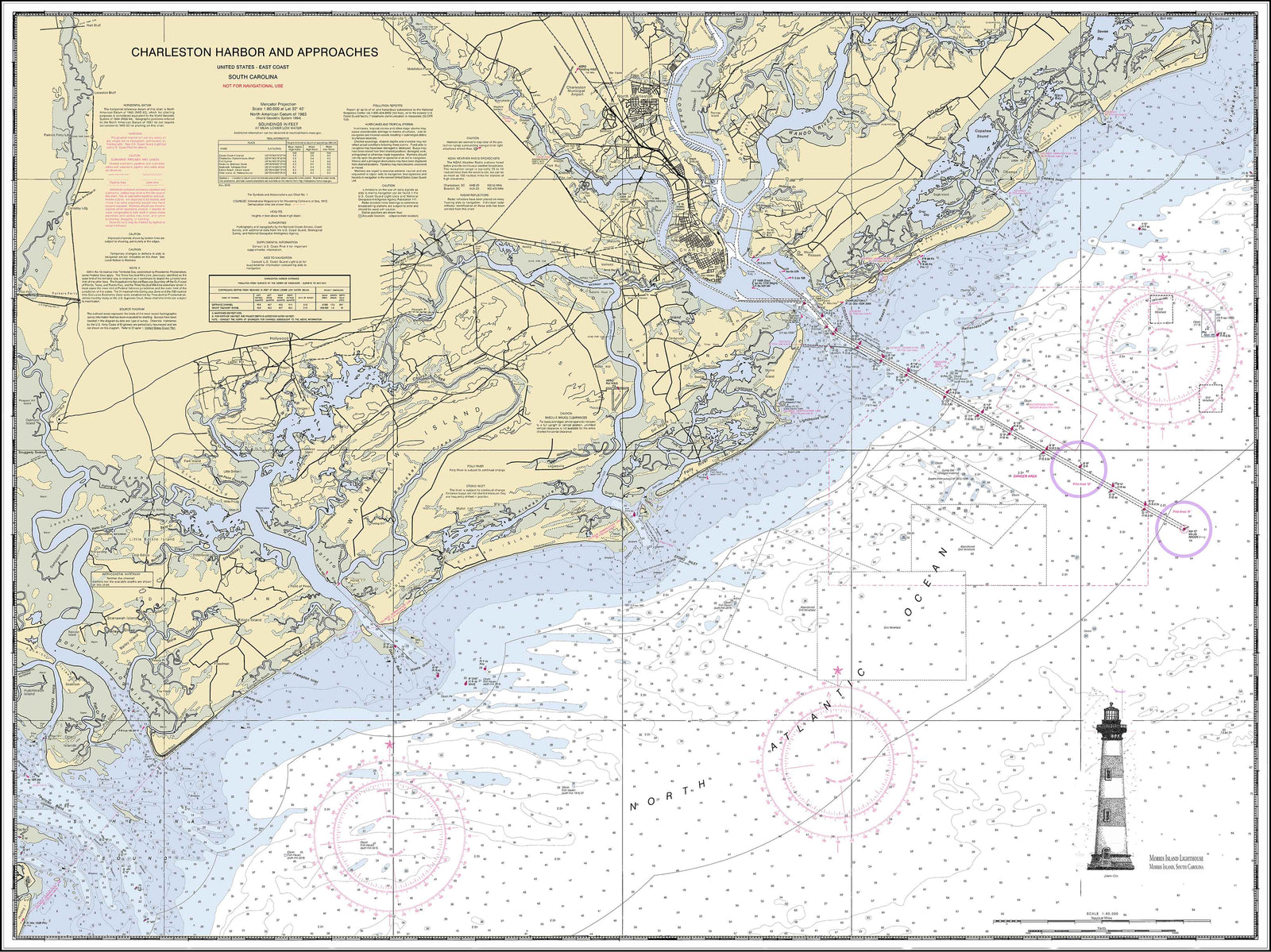 Lowcountry Sketches enhances actual NOAA nautical charts by eliminating any unnecessary imagery and emphasizing the color scheme. We print our charts on museum grade paper which protects against fading or deterioration. We can print in any size and offer our customized barnwood framing. Looking for an area outside of the Lowcountry? We can also find and print any area along the United States' vast coastlines.